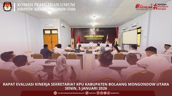 Bolaang Mongondow Utara, Senin (5/1/2026) — Komisi Pemilihan Umum (KPU) Kabupaten Bolaang Mongondow Utara melaksanakan Rapat Evaluasi Kinerja Sekretariat sebagai bagian dari refleksi atas capaian kinerja tahun sebelumnya serta perumusan langkah strategis di awal tahun 2026. Kegiatan ini dilaksanakan guna meningkatkan efektivitas dan kualitas dukungan kesekretariatan terhadap pelaksanaan tugas dan fungsi kelembagaan KPU.