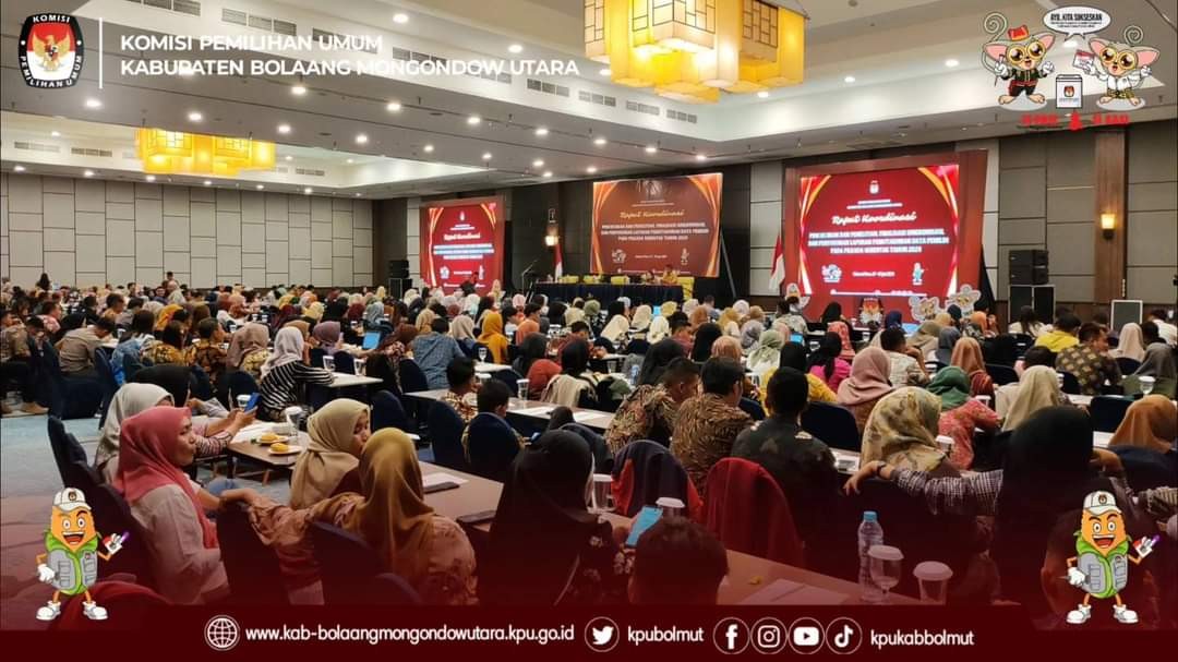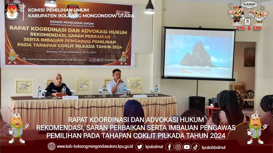 Komisi Pemilihan Umum (KPU) Kabupaten Bolaang Mongondow Utara (Bolmut) telah sukses melaksanakan Rapat Koordinasi dan Advokasi Hukum serta Imbauan Pengawas pada Tahapan Coklit Pilkada 2024. Kegiatan ini diselenggarakan pada tanggal 23 Juli 2024 di Coconut Cafe dan Resto, menghadirkan Panitia Pemilihan Kecamatan (PPK) se-Kabupaten Bolmut serta sejumlah narasumber dari berbagai instansi. Agenda rapat ini bertujuan untuk memperkuat koordinasi antar penyelenggara pemilu dan memastikan kelancaran proses Coklit (Pencocokan dan Penelitian) dalam rangka Pilkada Serentak 2024. Dalam rapat ini, hadir sebagai narasumber perwakilan dari Polres Bolmut, akademisi, dan Bawaslu Bolmut. Mereka memberikan berbagai materi terkait advokasi hukum serta imbauan pengawasan yang penting dalam menjaga integritas dan transparansi proses pilkada. Ketua KPU Bolmut Zamaludin Djuka dalam sambutannya, menekankan pentingnya sinergi antara KPU, PPK, dan instansi terkait guna memastikan setiap tahapan pemilu berjalan sesuai dengan peraturan yang berlaku. Ia juga menyampaikan apresiasinya kepada para narasumber yang telah berbagi pengetahuan dan pengalaman mereka dalam bidang hukum dan pengawasan pemilu. Rapat ini diharapkan dapat meningkatkan kesadaran dan pemahaman PPK mengenai pentingnya advokasi hukum serta pengawasan dalam proses Coklit, sehingga dapat meminimalisir potensi pelanggaran dan memastikan data pemilih yang valid dan akurat. Kegiatan ini juga menjadi wadah untuk mendiskusikan berbagai tantangan yang mungkin dihadapi serta solusi yang dapat diimplementasikan. Dengan berlangsungnya rapat ini, KPU Bolmut berharap seluruh PPK dapat menjalankan tugas dan tanggung jawab mereka dengan lebih baik, sehingga pelaksanaan Pilkada 2024 dapat berjalan dengan lancar, tertib, dan sesuai dengan prinsip-prinsip demokrasi.