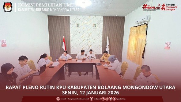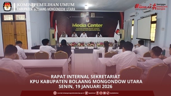 Bolaang Mongondow Utara — Senin, 19 Januari 2026, Sekretariat KPU Kabupaten Bolaang Mongondow Utara melaksanakan rapat internal yang bertempat di Ruang Media Center KPU Kabupaten Bolaang Mongondow Utara. Rapat internal ini menjadi momentum penting karena merupakan rapat perdana bersama Sekretaris KPU yang baru, Bapak Rudy Lalonsang, serta Kasubbag Keuangan, Umum, dan Logistik (KUL) yang baru, Bapak Saipul Sukardi. Rapat tersebut juga menjadi ajang pengenalan dan penguatan koordinasi awal antara pimpinan kesekretariatan dengan seluruh jajaran pegawai Sekretariat KPU Kabupaten Bolaang Mongondow Utara. Suasana rapat berlangsung komunikatif dan penuh kebersamaan sebagai langkah awal membangun sinergi kerja yang solid. Dalam rapat internalisasi ini, dibahas sejumlah agenda penting, di antaranya rancangan kinerja Sekretariat KPU ke depan, peningkatan kedisiplinan kerja, serta penguatan komunikasi dan koordinasi antar seluruh jajaran pegawai. Pembahasan ini diharapkan dapat menjadi landasan dalam meningkatkan efektivitas dan profesionalitas kerja di lingkungan Sekretariat KPU Kabupaten Bolaang Mongondow Utara. Melalui rapat internal ini, diharapkan terbangun komitmen bersama untuk terus meningkatkan kualitas pelayanan kelembagaan, memperkuat kerja tim, serta menciptakan lingkungan kerja yang disiplin, komunikatif, dan berorientasi pada kinerja.