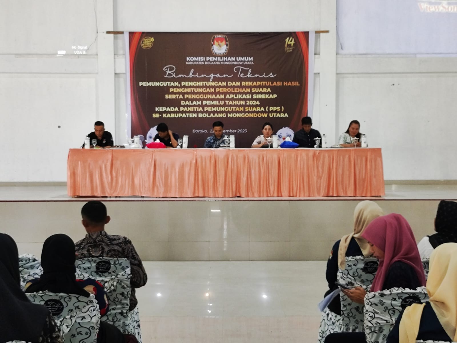 KPU BOLMUT - Komisi Pemilihan Umum (KPU) Kabupaten Bolaang Mongondow Utara (Bolmut) melaksanakan simulasi pemungutan dan penghitungan surat suara pada Pemilihan Umum (Pemilu) Tahun 2024. Dalam simulasi yang dilaksanakan pada Sabtu, 23 Desember 2023 di Hotel Boroko tersebut, beberapa kejadian yang dimungkinkan terjadi di Tempat Pemungutan Suara (TPS). Misalnya, terjadi kesalahan teknis mulai dari pemberian surat suara sampai pada pencoblosan. "Hal itu dilakukan agar saat di TPS nanti, kita sudah bisa mengantisipasi dan mencegah segala kemungkinan kendala yang akan terjadi di lapangan," kata Ketua Divisi Teknis dan Penyelenggaraan Nur Apri Ramadan L. Usman. Pada simulasi tersebut, dilakukan penghitungan perolehan surat suara seperti yang akan dilaksanakan KPPS pada 14 Februari 2024 nanti. Kemudian dilanjutkan dengan penggunaan aplikasi Sistem Informasi Rekapitulasi (sirekap) saat proses penghitungan dan rekapitulasi surat suara Pemilu 2024 yang dilaksanakan KPPS dalam menginput data. Di lokasi TPS, disediakan empat bilik dan empat kotak suara. Tak hanya itu, dalam simulasi juga terdapat Daftar Pemilih Tetap (DPT) di TPS setempat dan Daftar Calon Tetap (DCT) Pemilu 2024. Selain itu, terdapat tujuh Kelompok Penyelenggara Pemungutan Suara (KPPS) yang diperankan Panitia Pemilihan Kecamatan (PPK). Kemudian, saksi-saksi yang diperankan oleh Panitia Pemungutan Suara (PPS). "Jadi, simulasi ini merupakan tindak lanjut dari Bimtek yang diberikan kepada PPS. Kalau kemarin hanya disampaikan dalam bentuk teori, nah sekarang prakteknya," ucap Apri Ramadan Usman. Sebelum pemungutan suara dimulai, petugas KPPS dan saksi menggelar rapat pembukaan TPS. Rapat dibuka dengan pengambilan sumpah petugas KPPS yang disaksikan saksi dan pemilih yang telah hadir. Petugas KPPS membuka satu per satu kotak suara yang sebelumnya masih tersegel. Satu kotak suara mewakili pemilihan Presiden dan Wakil Presiden, DPD, DPR RI, DPRD Provinsi dan Kabupaten. Petugas kemudian mengeluarkan sejumlah surat suara dari setiap kotak suara, lalu dihitung. Jumlahnya mengacu kepada jumlah DPT, ditambah dua persen surat suara cadangan. Kemudian, Petugas KPPS menjelaskan teknis pemungutan suara, jenis surat suara, hingga hal-hal yang dilarang dilakukan saat pemungutan suara. Simulasi kemudian berlanjut ke pencoblosan, dimana petugas KPPS memanggil satu per satu nama pemilih. Selesai mencoblos, pemilih diarahkan menuju kotak suara dan mencelupkan jarinya ke tinta berwarna ungu. Apri Ramadan Usman berharap kegiatan simulasi ini memberikan pemahaman kepada PPS yang akan menjadi mitra kerja KPPS, terutama pada hari pemungutan suara nanti. "Kami berharap, apa yang didapatkan hari ini bisa menjadi pedoman agar tidak terjadi kekeliruan saat pelaksanaan teknis di lapangan pada 14 Februari 2024 nanti," pungkas Apri Ramadan Usman.